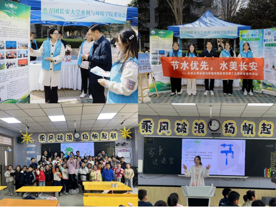 “环小青”科普宣讲团走进经开第一小学,开展“水润童心,绿动未来”主题科普活动,推进大中小学思想政治教育一体化建设。宣讲团成员通过动画演示、互动问答和活性炭净水实验,将专业知识转化为趣味科普内容。小学生们亲身体验污水净化过程,争先分享自己节水妙招,在实践中增强节水意识,让生态文明理念扎根少年心田。同时,学院与西安理工大学水利水电学院联合举办“节水优先,水美长安”科普宣传活动。青年志愿者们以“护好大水,喝好小水”公益项目为切入点,系统科普节水知识,发放定制文创礼品,激发高校学子节水热情。