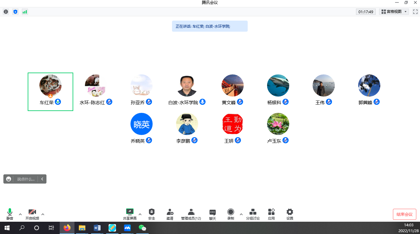 20221128日下午200,学院通过腾讯会议召开本科教材建设研讨会。院长白波、副院长卢玉东、副书记王妍、专业建设责任教授、系主任、实验中心主任参加了会议。