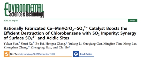 近日,笔趣阁 化学工程与技术系教师孙钰琨、徐帅、白波教授与西安交通大学何炽教授联合在环境领域权威期刊《Environmental Science & Technology》(《环境科学与技术》,影响因子:10.80)上发表题为“Rationally Fabricated Ce-Mn@ZrO2-SO42- Catalyst Boosts the Efficient Destruction of Chlorobenzene with SO2 Impurity: Synergy of Surface SO42- and Acidic Sites”的研究论文(文章链接://pubs.acs.org/doi/10.1021/acs.est.4c13915?ref=PDF)。该文采用Ce-O-Mn活性位点体系,辅以ZrO2-SO42-保护层,构筑了一种新型Ce-Mn@ZrO2-SO42--微米管催化剂,其不仅对氯苯深度净化表现出优异的活性,而且对SO2和水蒸气表现出优异的抗性。同时,深入剖析活性氧与多种酸位点的协同作用,是催化降解工业含氯可挥发性有机化合物的又一重大进展。