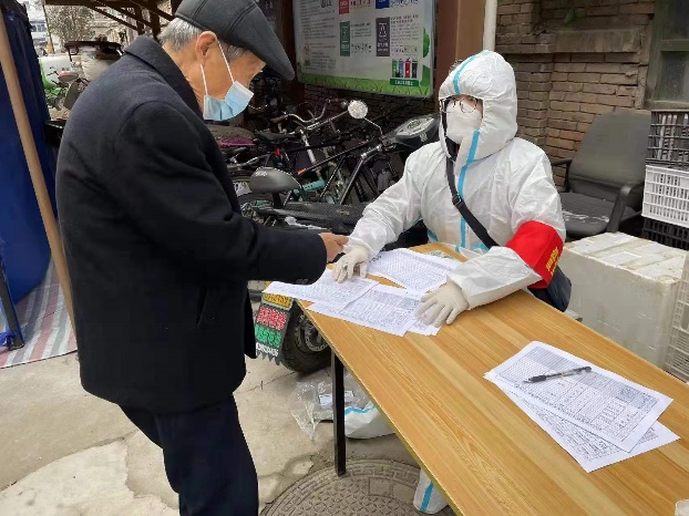 孙钰琨老师参加了雁塔西院家属区的抗疫工作,在这之前他就主动参加了水环志愿者活动。孙老师主要负责西院家属区的住户登记、核酸检测和住户的物资购买和配送。因为雁塔西区的住户中有很多老人,而小区没有电梯,孙老师常常自己拎着菜楼上楼下跑着为住户送菜。孙老师说“第一次参加一线抗疫工作,内心开始是有一些紧张的,但是只要穿上了防护服,带上了红袖章,就有一种使命感。我一直在笔趣阁