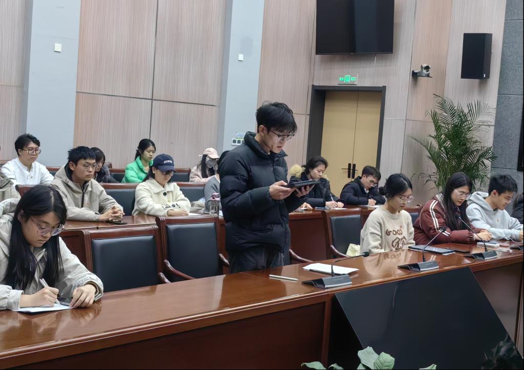谈震强调学生党员先进性的核心要义在于“全心全意为同学服务”,参与学业帮扶工作是学生党员践行党的宗旨最直接的体现,并对“党员一对一学业帮扶”期末攻坚工作进行部署,伊力夏提指出,教育事业的发展离不开师生党员共同努力,要在工作学习中做表率,自觉提升“政治三力”。学生党员围绕科研报国与发扬艰苦奋斗精神进行研讨,阐述学生党员应在思想上引领、在学业上示范、在攻坚中担当、在奉献中提升自己。