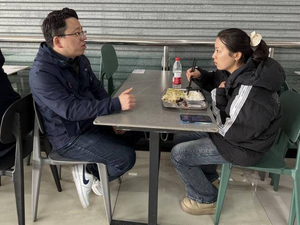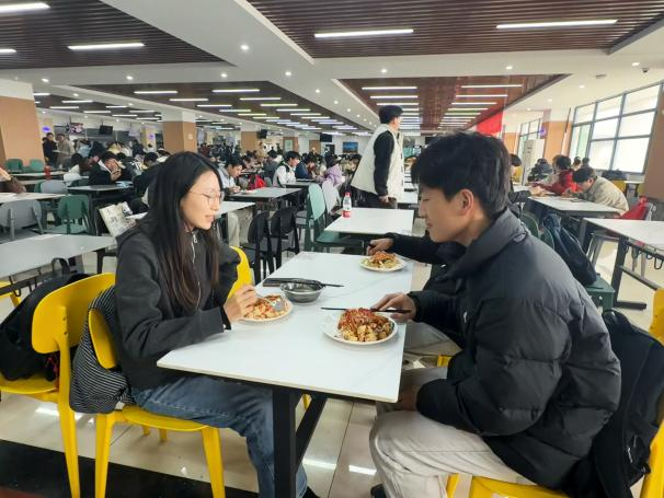 各年级辅导员分别邀请了学生代表在食堂共进午餐,在轻松愉快的氛围中进行了更深入的交流。餐桌上,辅导员们详细了解了同学们上学期的考试情况、本学期的学习计划、学业困难情况以及对未来发展的初步思考。对于即将面临毕业选择的高年级学生,交流则侧重就业进展、实习情况,特别询问了大四考研初试成绩自我评估、心理状态以及后续复试或调剂的准备情况,并结合往届案例和当前形势,为同学们提供了针对性的建议、信息渠道和心理疏导。