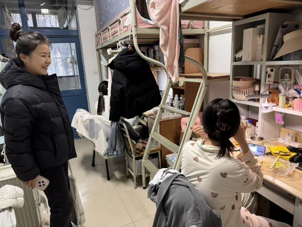刘扬与辅导员带着新年的祝福与问候,逐一走访了所负责年级的学生宿舍。走访过程中,辅导员们细致查看了宿舍的卫生与安全状况,关切询问同学们寒假期间的生活见闻、社会实践经历、家庭情况以及返校后的适应状态。他们特别叮嘱同学们要注意初春时节天气变化,合理安排作息,保持宿舍环境整洁,注意用电与财产安全,以饱满的精神和健康的体魄迎接新学期的挑战。